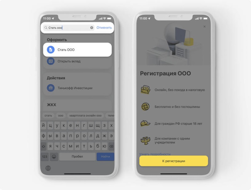 ООО с одним учредителем можно открыть бесплатно через сервис регистрации Тинькофф.